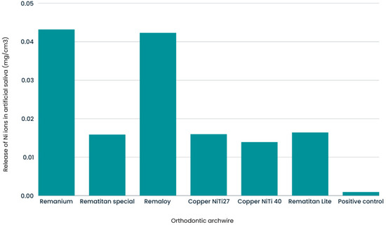 - Azizi, A.; Jamilian, A.; Nucci, F.; Kamali, Z.; Hosseinikhoo, N.; Perillo, L. Release of metal ions from round and rectangular NiTi wires. Prog. Orthod. 2016, 17, 10. [Google Scholar] [CrossRef] [PubMed]