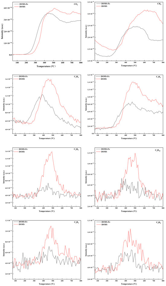 Release of small organic molecules during the DSMS and DSMS-Fe combustion.