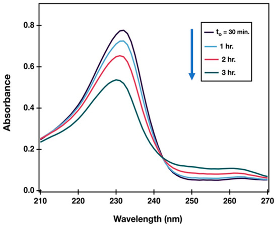 Absorbance spectrum demonstrating naproxen’s photodegradation with the optimized conditions.