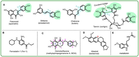 - Chen, B.; Li, X.; Ouyang, X.; Liu, J.; Liu, Y.; Chen, D. Comparison of Ferroptosis-inhibitory Mechanisms between Ferrostatin-1 and Dietary Stilbenes (Piceatannol and Astringin). Molecules 2021, 26, 1029. [Google Scholar] [CrossRef]