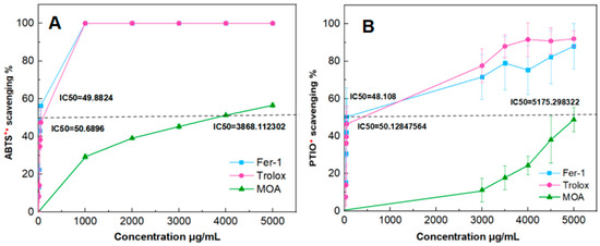 - Li, X.C. 2-Phenyl-4,4,5,5-tetramethylimidazoline-1-oxyl 3-oxide (PTIO•) Radical Scavenging: A New and Simple Antioxidant Assay In Vitro. J. Agric. Food Chem. 2017, 65, 6288–6297. [Google Scholar] [CrossRef]
