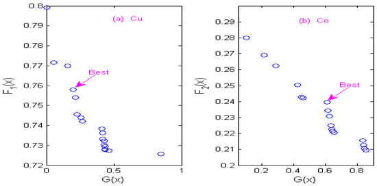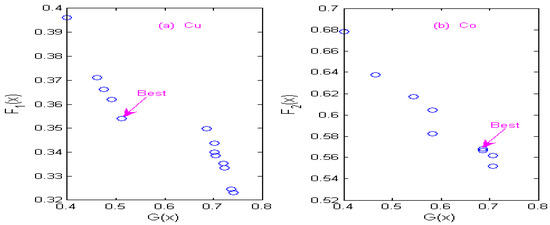 Non-inferior solution sets of copper and cobalt under Db4 wavelet. (a) Non-inferior solution sets of copper. (b) Non-inferior solution sets of cobalt.