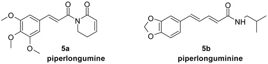 - Piska, K.; Gunia-Krzyżak, A.; Koczurkiewicz, P.; Wójcik-Pszczoła, K.; Pękala, E. Piperlongumine (Piplartine) as a Lead Compound for Anticancer Agents—Synthesis and Properties of Analogues. Eur. J. Med. Chem. 2018, 156, 13–20. [Google Scholar] [CrossRef]