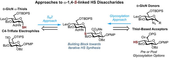 A solution of p-monomethoxytrityl 2-acetamido-3,6-O-dibenzoyl-4-O-levulinoyl-2-deoxy-1-thio-α-d-glucopyranoside 32 (234 mg, 0.29 mmol, 1.00 equiv.) in CH2Cl2 (29 mL) was cooled to 0 °C and treated with the dropwise addition of TFA (219 µL, 2.87 mmol, 10.0 equiv.), followed by the addition of Et3SiH (311 µL, 1.95 mmol, 6.80 equiv.). The reaction was stirred at 0 °C for 1 h and a further 3 h at RT. A TLC analysis (9/1, CH2Cl2/Et2O) revealed the full conversion of the starting material to a lower Rf spot. The reaction mixture was concentrated in vacuo to generate a yellow residue. The purification of this crude material via column chromatography (1/0 → 8/2, CH2Cl2/Et2O) furnished the title compound 34 as a white solid (98.0 mg, 0.18 mmol, 62%). Rf = 0.51 (CH2Cl2/Et2O); m.p. 67–70 °C; +22.9 (c = 0.56, CHCl3); 1H NMR (400 MHz, CDCl3) δ 8.09–8.07 (m, 2H, Ph), 8.01–7.97 (m, 2H, Ph), 7.58 (m, 2H, Ph), 7.51–7.42 (m, 4H, Ph), 6.04 (d, J = 8.1 Hz, 1H, NH), 5.89 (dd, J = 6.8, 5.3 Hz, 1H, H1), 5.46 (t, J = 9.6 Hz, 1H, H4), 5.43–5.36 (m, 1H, H3), 4.64–4.59 (m, 1H, H2), 4.58–4.53 (m, 2H, H5, H6a), 4.47 (dd, J = 12.5, 4.5 Hz, 1H, H6b), 2.60 (dd, J = 9.4, 4.7 Hz, 2H, Lev-CH2), 2.52–2.36 (m, 2H, Lev-CH2), 2.05 (d, J = 6.9 Hz, 1H, SH), 1.95 (s, 3H, Lev-CH3), 1.90 (s, 3H, CH3); 13C NMR (100 MHz, CDCl3) δ 205.8 (C=O), 171.6 (C=O), 170.3 (C=O), 167.6 (C=O), 166.3 (C=O), 133.9 (CH), 133.3 (CH), 130.2 (CH), 129.9 (Cq), 128.8 (Cq), 128.7 (CH), 128.6 (CH), 123.0 (CH), 79.2 (C1), 71.5 (C3), 69.4 (C5), 68.3 (C4), 62.4 (C6), 53.3 (C2), 38.0 (Lev-CH2), 29.5 (Lev-CH3), 28.0 (Lev-CH2), 23.3 (CH3). HRMS (ESI+) m/z found (M+H)+ 544.1632; C27H30NO9S requires 544.1636.