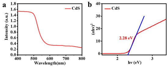 (a) UV–vis diffuse reflectance spectra (DRS) of CdS. (b) The band-gap energy of CdS.