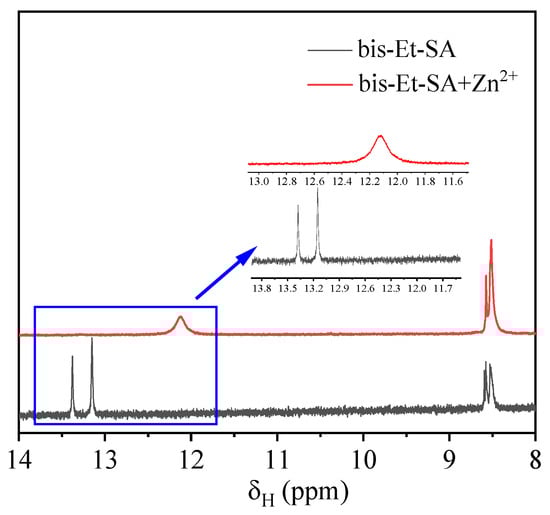 The fraction 1HNMR spectroscopy of bis-Et-SA and bis-Et-SA+Zn2+ in DMSO-d6.
