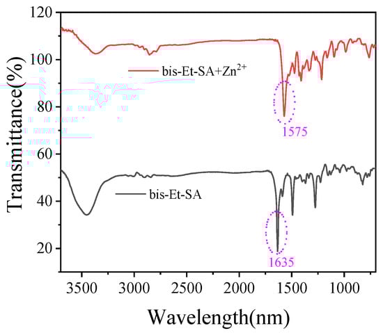 The IR spectra of bis-Et-SA and bis-Et-SA+Zn2+.