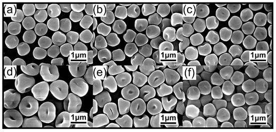 The content of the crosslinker is another one of the most important parameters affecting the particle size distribution and morphology in the dispersion polymerization process. Therefore, in order to explore the effects of different amounts of DVB on the monodispersity and morphology of microspheres, a series of experiments were carried out to change the content of DVB under other constant conditions.