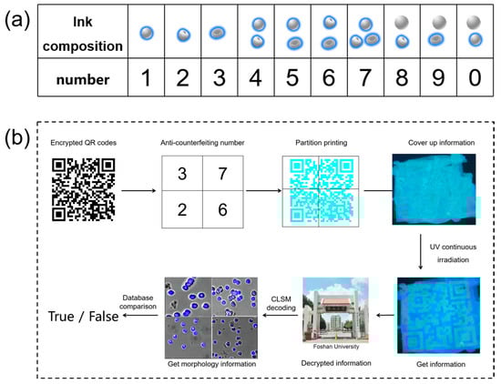 Amid unceasing technological advancements and the dawn of the digital era, the proliferation of counterfeit merchandise and information breaches has become increasingly prevalent, resulting in substantial annual economic forfeitures. To counteract these issues and safeguard both commodity and informational integrity, a plethora of anti-counterfeiting and encryption technologies have been developed, including quick response (QR) codes [1], hologram [2], color transition [3,4], photoluminescent patterns [5,6], and stimuli-responsive substances [7,8,9]. Nonetheless, these methods commonly exhibit disadvantages such as susceptibility to forgery, high production expenses, intricate fabrication processes, and cumbersome detection procedures.