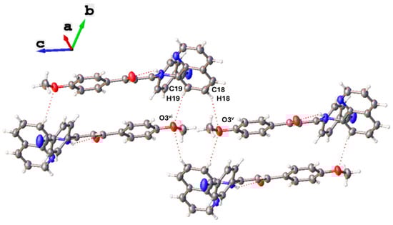 Intermolecular hydrogen bonds C18-H18···O3v and C19-H19···O3vi in the crystal packing of SB2.