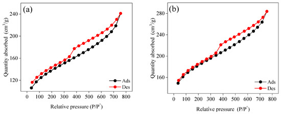 N2 adsorption and desorption isotherms of ACS1 (a) and ACS2 (b) samples.