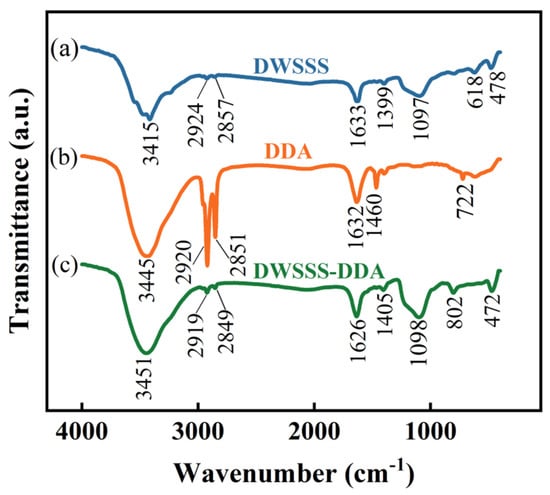 Infrared spectrum results: (a) DWSSS; (b) DDA; (c) DWSSS-DDA.