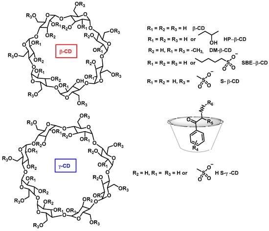- Hägele, J.S.; Hubner, E.-M.; Schmid, M.G. Chiral separation of cathinone derivatives using β-cyclodextrin-assisted capillary electrophoresis–Comparison of four different β-cyclodextrin derivatives used as chiral selectors. Electrophoresis 2019, 40, 1787–1794. [Google Scholar] [CrossRef] [PubMed]