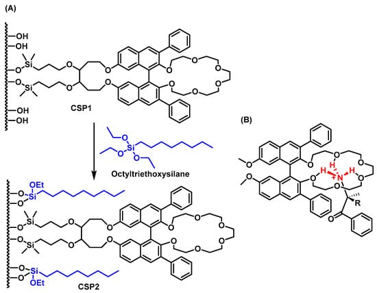 - Hyun, M.H.; Han, S.C.; Choi, H.J.; Kang, B.S.; Ha, H.J. Effect of the residual silanol group protection on the liquid chromatographic resolution of racemic primary amino compounds on a chiral stationary phase based on optically active (3,3′-diphenyl-1,1′-binaphthyl)-20-crown-6. J. Chromatogr. A 2007, 1138, 169–174. [Google Scholar] [CrossRef]