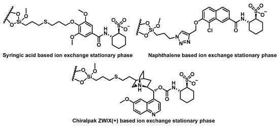 - Wolrab, D.; Kohout, M.; Boras, M.; Lindner, W. Strong cation exchange-type chiral stationary phase for enantioseparation of chiral amines in subcritical fluid chromatography. J. Chromatogr. A 2013, 1289, 94–104. [Google Scholar] [CrossRef]