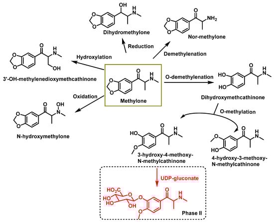 - Kamata, H.T.; Shima, N.; Zaitsu, K.; Kamata, T.; Miki, A.; Nishikawa, M.; Katagi, M.; Tsuchihashi, H. Metabolism of the recently encountered designer drug, methylone, in humans and rats. Xenobiotica 2006, 36, 709–723. [Google Scholar] [CrossRef] [PubMed]