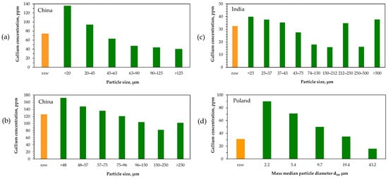 Other countries have also commenced more attention to the gallium content of their coal deposits [51,58,60,64,65,76,80]; however, data on this topic are relatively scarce. These studies usually report the element’s concentration in a limited number of samples, but they are not as extensive or systematically planned as in the case of Chinese coal deposits.