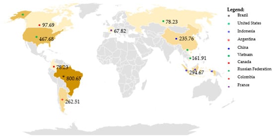 Figure 2 shows the 10 countries that use the largest amounts of pesticide per ton. These countries include Brazil, the United States, Indonesia, Argentina, China, Vietnam, Canada, Russian Federation, Colombia and France [16].