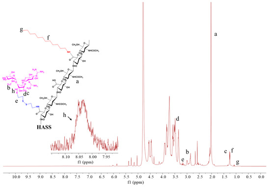 1H NMR spectra of blank HASS nanomicelles. Samples were dissolved in deuterium, and the spectrum was acquired at room temperature using a Bruker AM 500 spectrometer, a–h represent the positions of different H in the nuclear magnetic spectrum of the synthesized material.