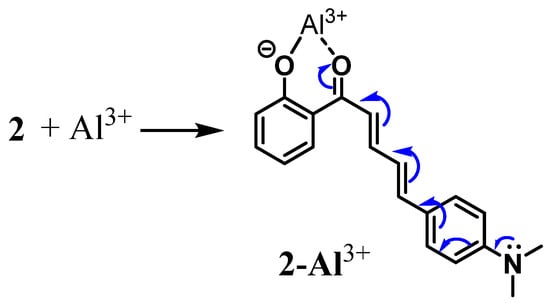 Proposed formation of the Al3+ complex 2-Al3+, where the curved arrows show enhanced ICT.