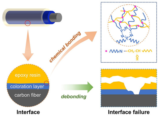 The diagram depicts the interfacial response between CF-ACP and EP matrix [49]. Copyright 2016 Elsevier.