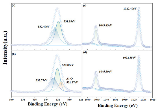 The data presented in (c) and (d) indicate that there is no significant change in the peak value of Zn 2p following ABN treatment, suggesting that ABN does not utilize the Zn site for adsorption. Instead, it appears that ABN employs the O bond as a connecting agent to interact with the Al site within the ABN structure.