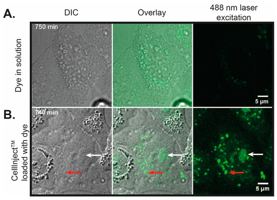 2.5. Cellular Dye Uptake and Distribution of R9 when Loaded on CellInject