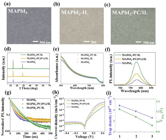 - Luo, J.S.; Lin, F.Y.; Yuan, J.Y.; Wan, Z.Q.; Jia, C.Y. Application of Ionic Liquids and Derived Materials to High-Efficiency and Stable Perovskite Solar Cells. ACS Mater. Lett. 2022, 4, 1684–1715. [Google Scholar] [CrossRef]