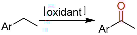 The selective oxidation of C–H bonds of alkylarenes to high-value chemicals using environmentally benign oxidants represents a significant achievement in industrial and research fields [7,8,9]. Traditionally, aromatic ketones are synthesized by Friedel–Crafts acylation [10,11] or transition-metal catalyzed methods [12]. Consequently, a plethora of innovative methodologies for benzylic C–H oxidation of alkylarenes to ketones have been documented by different research groups globally. Furthermore, benzylic C–H oxidation has been shown as a key step in the synthesis of various heterocyclic compounds.
