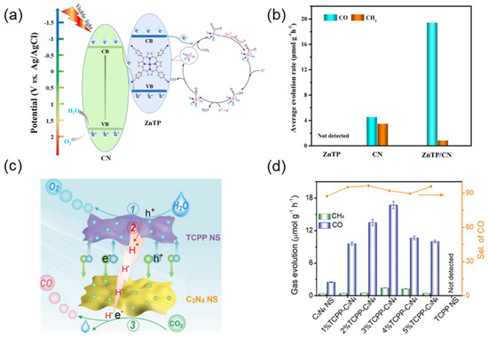 - Jia, Z.; Xiao, Y.; Guo, S.; Xiong, L.; Yu, P.; Lu, T.; Song, R. Porphyrin Supramolecular Nanoassembly/C3N4 Nanosheet S-Scheme Heterojunctions for Selective Photocatalytic CO2 Reduction toward CO. ACS Appl. Mater. Interfaces 2023, 15, 47070–47080. [Google Scholar] [CrossRef]
