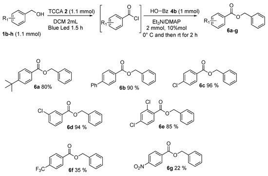 3.4. General Procedure for the Synthesis of Esters 5a–g, 6a–g and 7a–f via Blue LED Irradiation