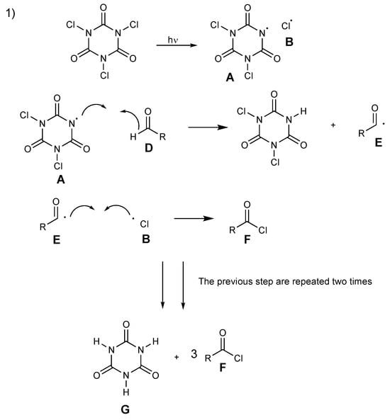 - Gaspa, S.; Carraro, M.; Pisano, L.; Porcheddu, A.; De Luca, L. Trichloroisocianuric acid: A versatile and efficient chlorinationg and oxidizing reagent. Eur. J. Org. Chem. 2019, 2019, 3544–3552. [Google Scholar] [CrossRef]