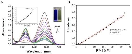 - Koc, O.K.; Ozay, H. A simple azoquinoline based highly selective colorimetric sensor for CN− anion in aqueous media. Can. J. Chem. 2017, 95, 771–777. [Google Scholar] [CrossRef]