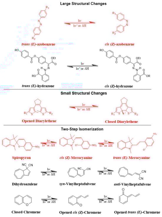 The most common photoswitches and their photoisomerization reactions.
