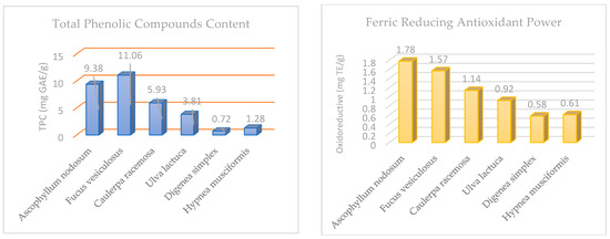 Total phenolic compounds (mg GAE/g) and ferric-reducing antioxidant power (mg TE/g) in selected edible algae.