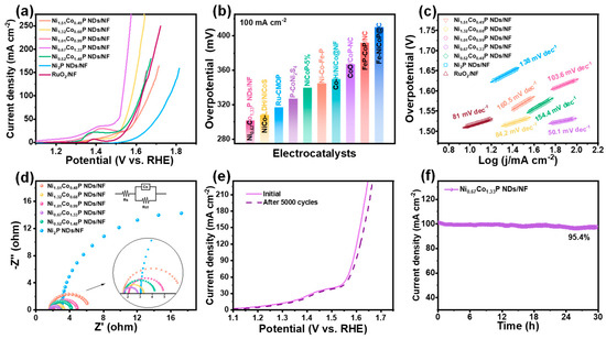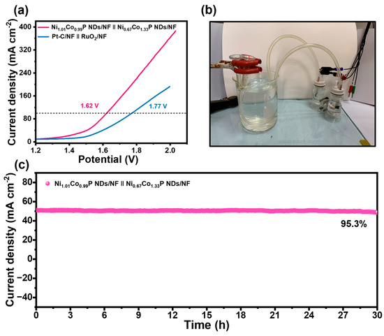 - Liu, H.; Li, J.; Zhang, Y.; Ge, R.; Yang, J.; Li, Y.; Zhang, J.; Zhu, M.; Li, S.; Liu, B.; et al. Boosted water electrolysis capability of NixCoyP via charge redistribution and surface activation. Chem. Eng. J. 2023, 473, 145397. [Google Scholar] [CrossRef]