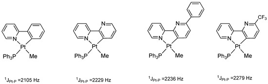 195Pt-31P NMR coupling constants in [Pt(N^C)(PPh3)Me] complexes as a consequence of N^C ligand donor properties [12,24,25].