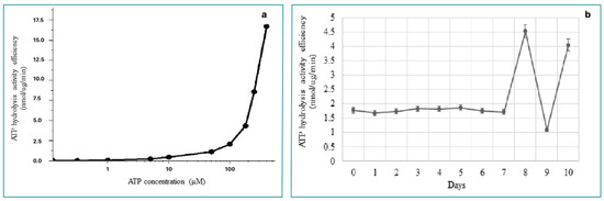 (a) Evaluation of ATPase activity. (b) Evaluation of ATPase stability.
