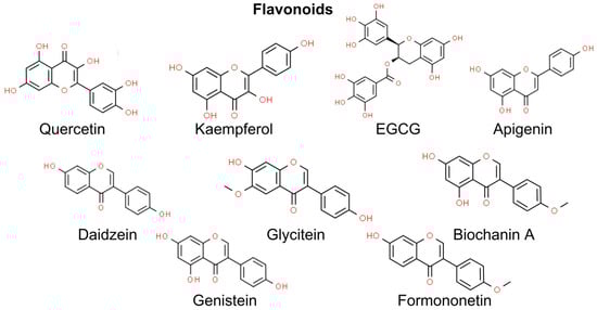 Flavonoids are phytochemical compounds classified into seven subclasses, namely flavonols, flavones, isoflavones, anthocyanidins, flavanones, flavanols, and chalcones [111]. Flavonoids are well-established antioxidants since they scavenge ROS via inhibiting superoxide anion-producing oxidases, chelating trace metals, and activating antioxidant enzymes. Due to their antioxidant activity, flavonoids may protect from UV-induced skin damage and NMSCs. Conversely, flavonoids may also trigger excessive oxidative stress and induce apoptosis in several cancer cell types, e.g., breast cancer and colorectal cancer cell lines [112]. However, there is limited evidence of the prooxidant activity of flavonoids in the prevention and management of NMSCs. Thus, in this chapter, we focus on the antioxidant activity of flavonoids in the prevention of skin damage (Figure 3).