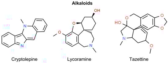 - Heinrich, M.; Mah, J.; Amirkia, V. Alkaloids Used as Medicines: Structural Phytochemistry Meets Biodiversity—An Update and Forward Look. Molecules 2021, 26, 1836. [Google Scholar] [CrossRef]