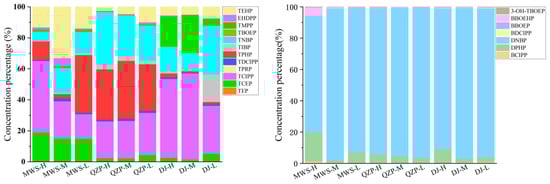 Concentration percentage of individual OPEs in surface sediment.