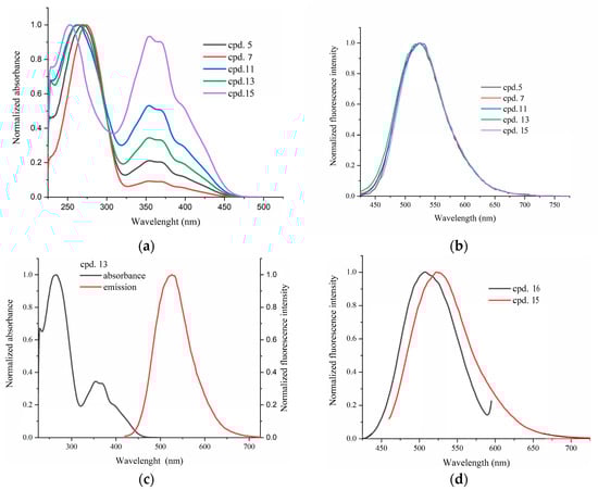 | Cpd. | λabs (nm) [ε (M−1·cm−1)] | λex (nm) | λem (nm) | Stokes Shift (cm−1) |