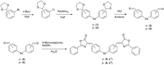 - Panda, A.; Menon, S.C.; Singh, H.B.; Butcher, R.J. Synthesis of some macrocycles/bicycles from bis(o-formylphenyl) selenide: X-ray crystal structure of bis(o-formylphenyl) selenide and the first 28-membered selenium containing macrocyclic ligand. J. Organomet. Chem. 2001, 623, 87–94. [Google Scholar] [CrossRef]