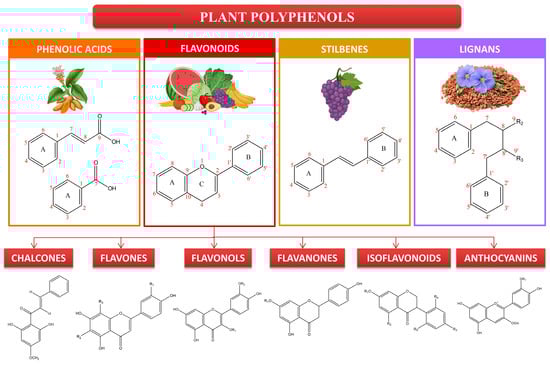 Polyphenols are classified as phenolic acids, flavonoids, stilbenes, and lignans based on their structure and the numbering of carbons.