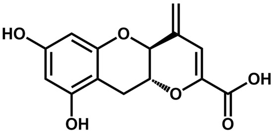 Teadenol B (Figure 1) is a characteristic chemical component of ripe Pu-erh tea, which was first disclosed by Japanese scholars in 2011 and isolated from the metabolites of fermented tea by Aspergillus fungi. It has been reported to promote adiponectin secretion and inhibit protein tyrosine phosphatase 1B expression [24].