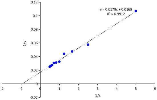 Lineweaver–Burk double-inverse plot of LQ-BG5 with α-lactose as substrate.