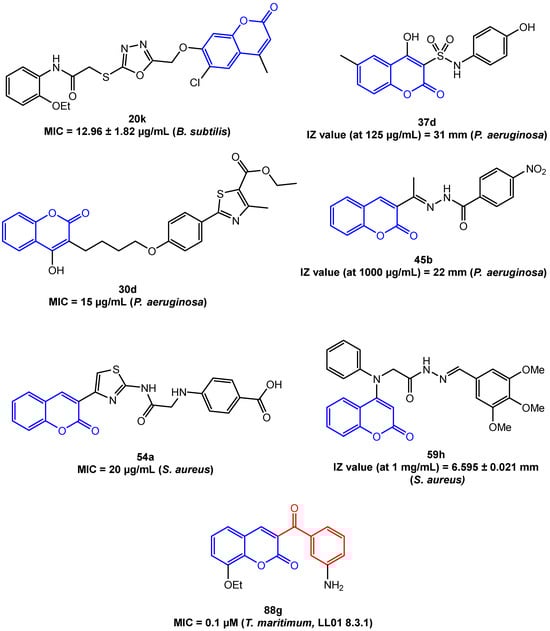 - Abduljabbar, T.T.; Hadi, M.K. Synthesis, Characterization and Antibacterial Evaluation of Some Coumarin Derivatives. Iraqi J. Pharm. Sci. 2021, 30, 249–257. [Google Scholar] [CrossRef]