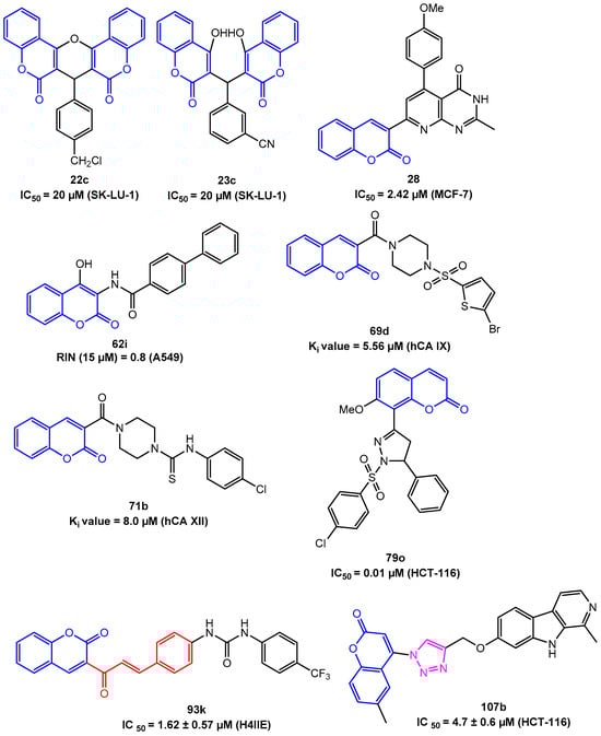 - Kostova, I. Synthetic and Natural Coumarins as Cytotoxic Agents. Curr. Med. Chem. Anti-Cancer Agents 2005, 5, 29–46. [Google Scholar] [CrossRef] [PubMed]