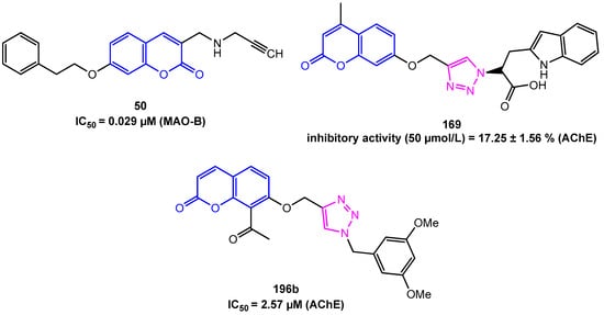 - Sharma, A.; Bharate, S.B. Synthesis and Biological Evaluation of Coumarin Triazoles as Dual Inhibitors of Cholinesterases and β-Secretase. ACS Omega 2023, 8, 11161–11176. [Google Scholar] [CrossRef] [PubMed]
