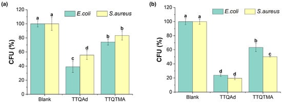 3.7. Evaluation of the Antibacterial Effect of TTQAd, TTQTMA against E. coli and S. aureus